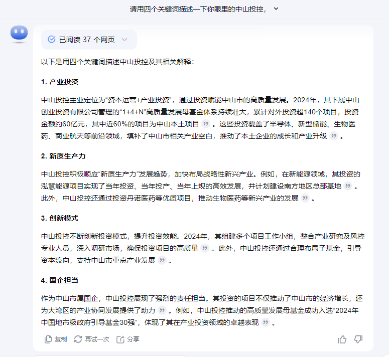 總結(jié)AI眼中的中山投控:四大核心畫像